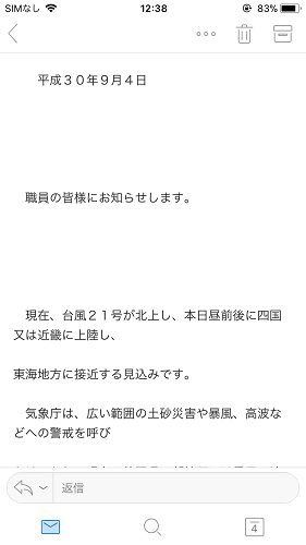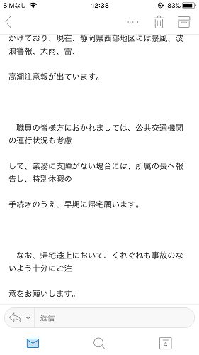 なんと!「台風早期退勤通知」というメールが届いていた。