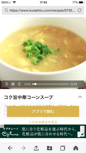 「コク旨中華コーンスープ」のレシピを発見。
