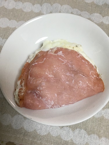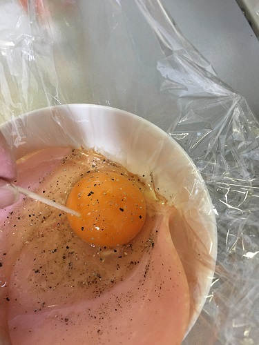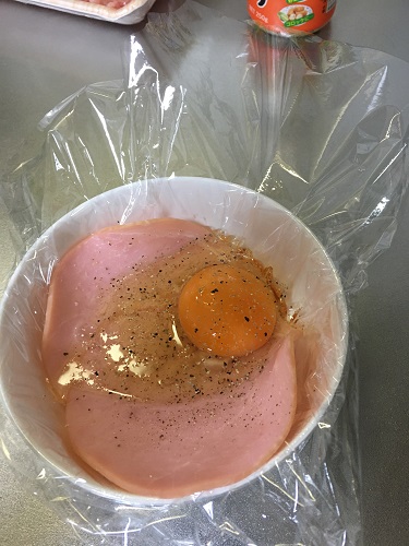 サランラップ→ハム→塩コショウ→卵→塩コショウとやっていき