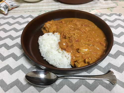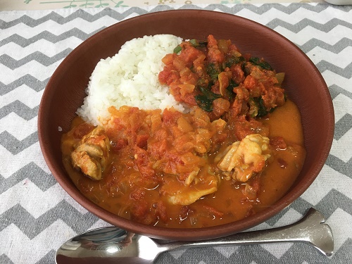 別の日にはチキンカレーとほうれん草のカレー(少し辛い)も作ってみた。