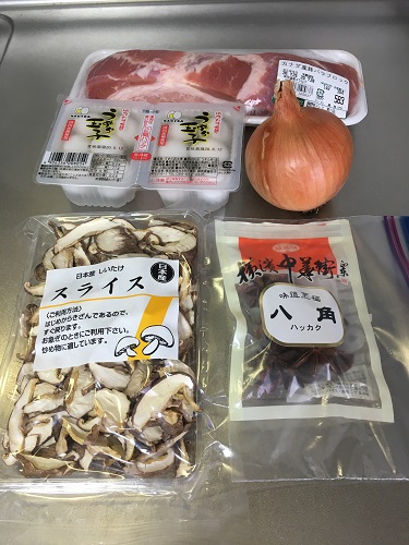 干しシイタケ、タマネギ、ブタバラ肉、ウズラの卵、タクアンを購入。