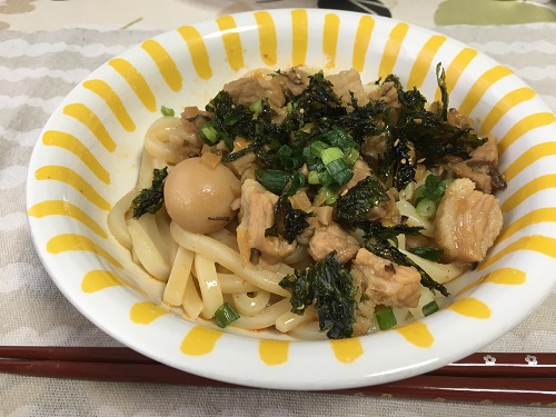 茹でて冷やしたうどんに「ぷちっとうどん 坦々ごまうどん」を混ぜ合わせ