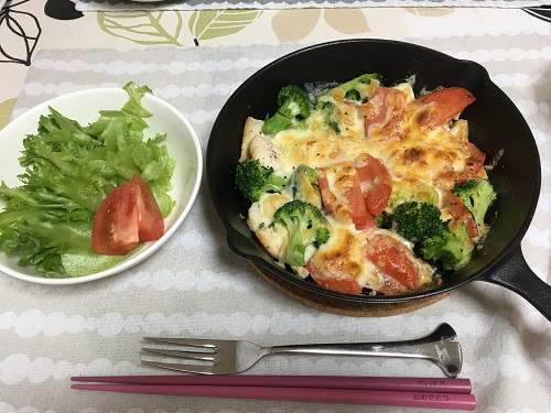 ・鶏むね肉とブロッコリーとトマトのグラタン