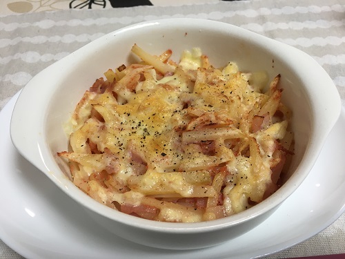 チーズを乗せてオーブンで焦げ目がつくまで焼く。