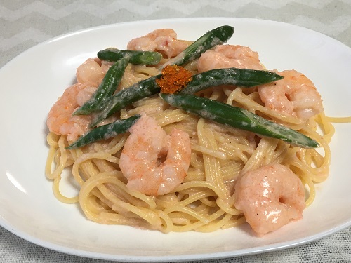 フライパンに茹でたパスタを入れて軽くまぜて完成。