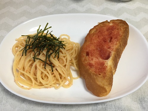 バタールを買ってきて、たらこスプレッドを塗ってトースト。