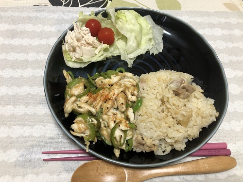 鶏肉の七味蒸しの味噌七味ダレにした。
