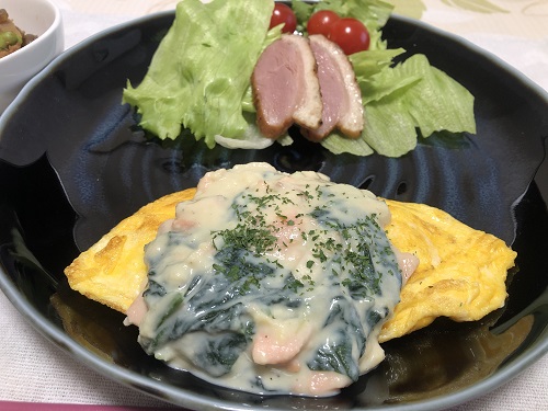 チーズ入りのオムレツを作り、ホワイトソースをかけて完成!!!