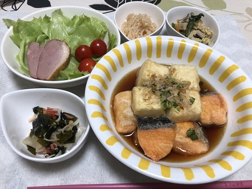 あとは作り置き煮物とサラダをつければ立派な夕ご飯!!