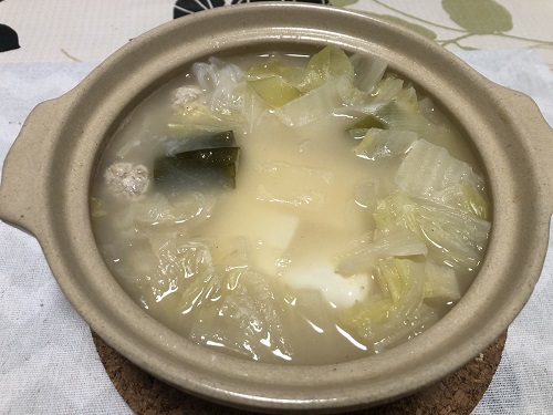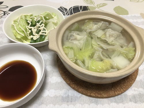 水餃子は冷凍してあったハクサイと長ネギを使用。