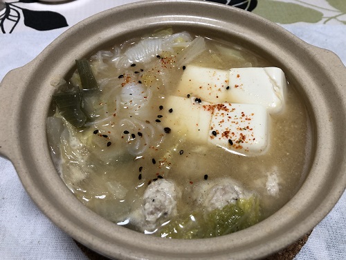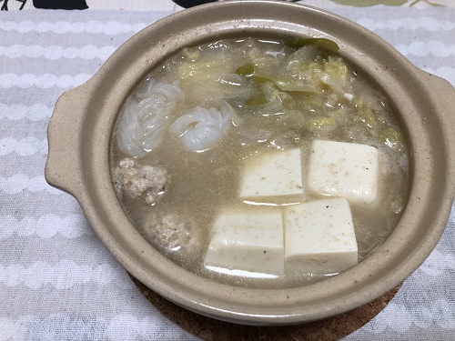 10個入りの結びシラタキは水餃子以外の5回の鍋に2個ずつ入れ
