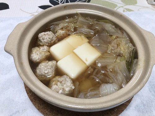 鶏モモ肉と鶏ムネ肉のひき肉で鶏肉ダンゴを25個作って煮込む。