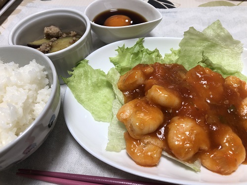 今回はエビチリだった。