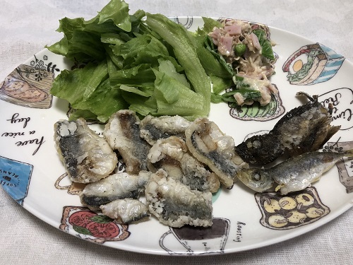 という事で翌日はアジとカサゴとサッパの唐揚げ