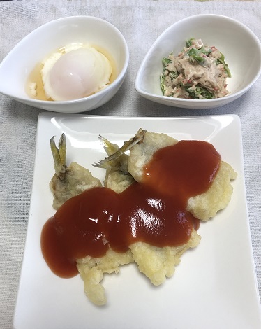 揚げたサッパの天ぷらに甘酢あんをかけて出来上がり!