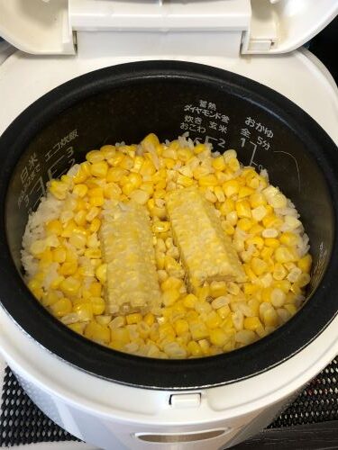 芯の部分も一緒に炊いて「トウモロコシご飯」を作った!