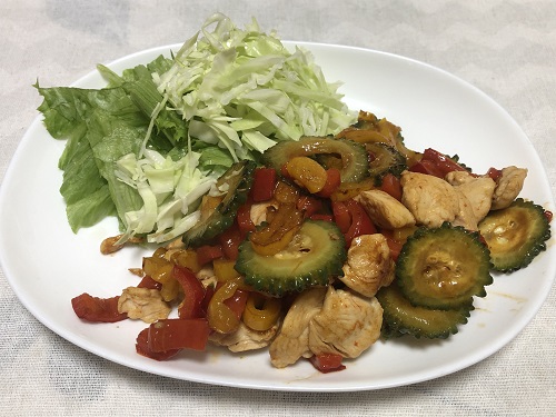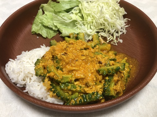 ゴーヤを輪切りにして油で揚げてからスパイスカレーに入れる方法もあったけれど