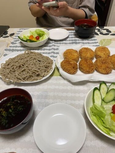 蕎麦は3人前茹で、コロッケは完食!