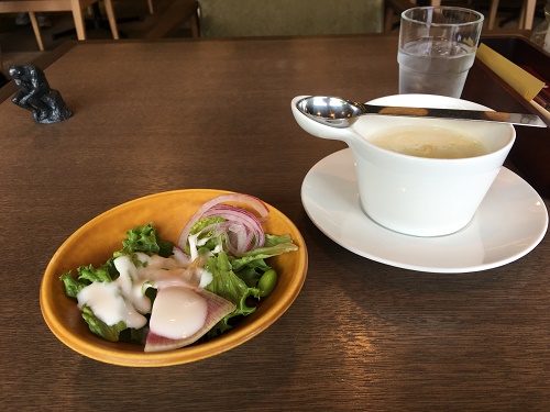 サラダとコーンスープが最初にやってきた。