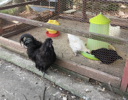 外に出ると、なんと!烏骨鶏が飼育されていた。