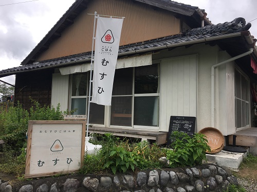 「おむすびご飯家 むすひ」と書いてある。