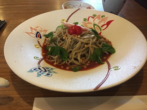 トマトソースパスタみたいな蕎麦。