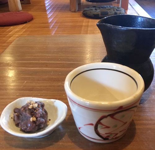 その後、蕎麦湯と一口ぜんざいを持ってきてくれた。