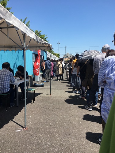 ここで帰るわけにはいかないと炎天下の中並ぶ。
