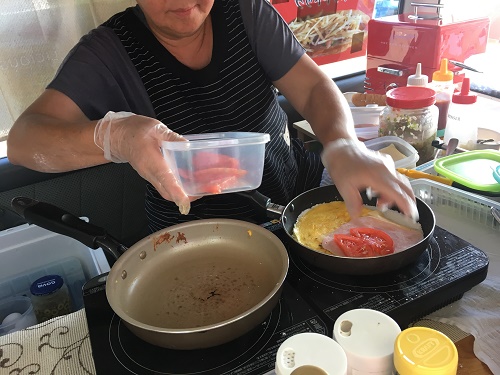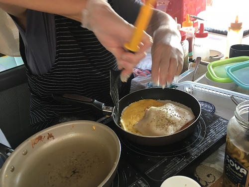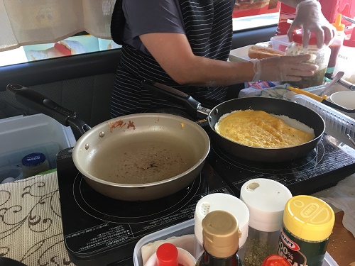 一つには溶き卵を、もう一つはタピオカミックスをそのまま入れる。