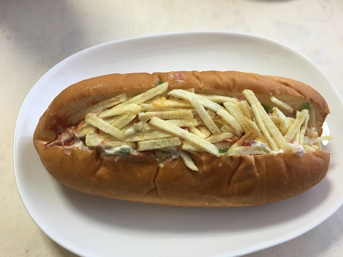 ビネグレットとソーセージ、その上に細切りしたジャガイモ。