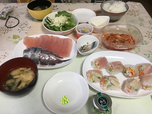 マグロの刺身とアジの刺身、生春巻きを作ったので