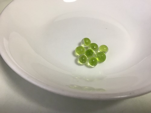 見た目は丸くて半分透明、半分緑色の小さな球体だ。