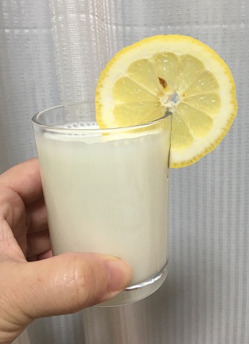 次はヨーグルトドリンクと日本酒を1:1で混ぜる。