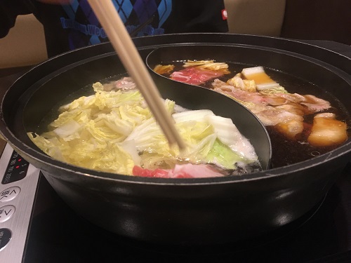 Sちゃんは白菜や豆腐や肉を投入していた。