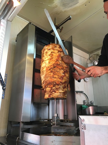 お店の前にある移動販売のケバブ屋さんを見て
