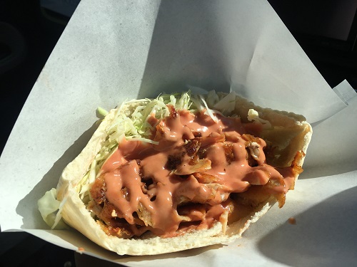 そして、「チキンチーズケバブ」をオーダーして外のベンチに座って食べ始めた。
