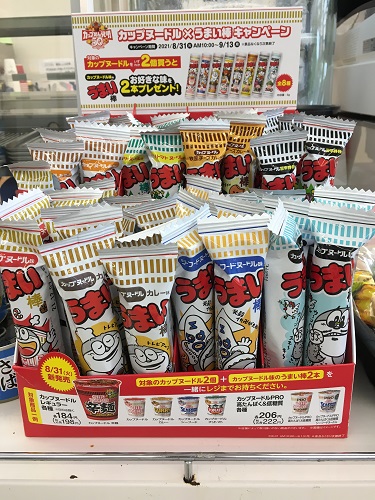 某コンビニで「カップヌードル×うまい棒キャンペーン」をやっていた。