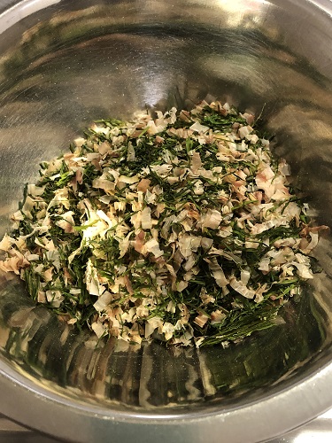 鰹節と醤油を入れて混ぜて完成!!