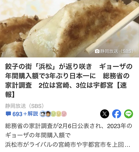 そういう記事を見ると餃子を食べたくなるよね(笑)