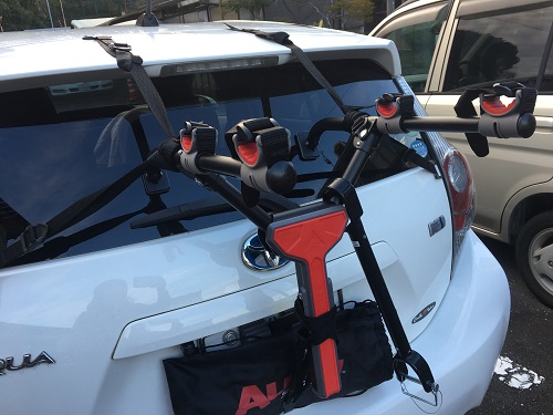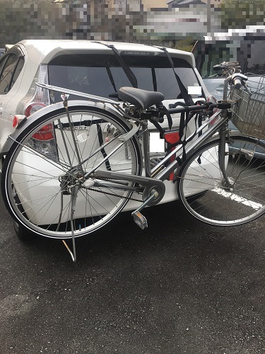 そこで自転車をリアサイクルキャリアに搭載して自転車屋さんへと運ぶ。