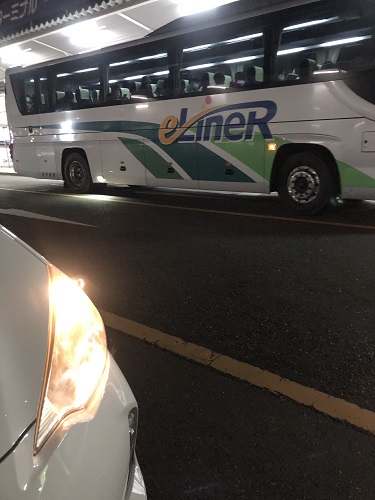 到着予定時刻の10分前に着いたらすぐに高速バスが到着して