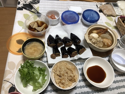 この日はSちゃんの大好きなナスのはさみ揚げ、桜ご飯、里芋の煮物