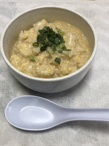 Sちゃんは少し回復した管理人用に卵雑炊を作ってくれた。