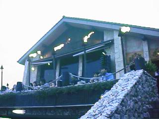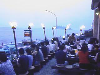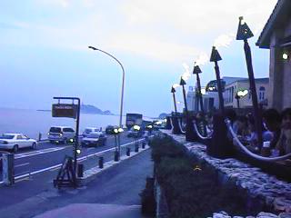 夜になると外テラスにはかがり火が焚かれてとっても目立つカフェだった。