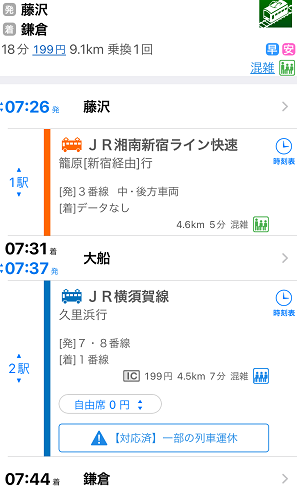 藤沢駅からJRで鎌倉に行けることが分かった。