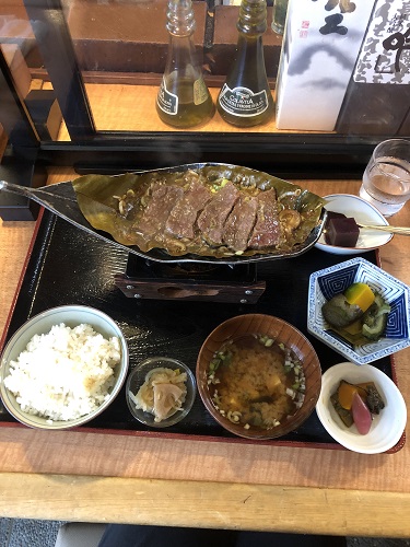 カウンターに通され、「飛騨牛朴葉味噌焼き定食」をオーダー。