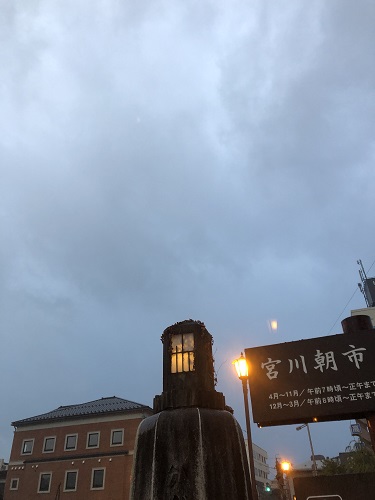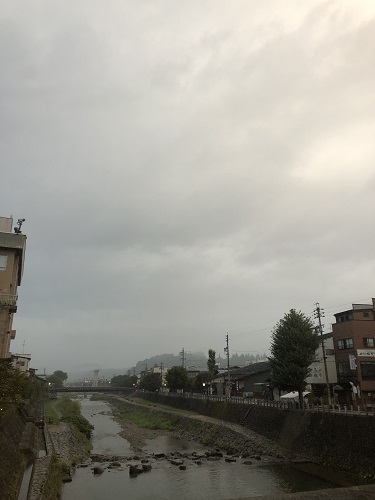 小雨が降る中、フロントにキーを預けてテクテクと歩いて行く。