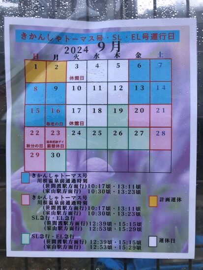 道の駅「川根温泉」にも運行日と時間が書いた紙が貼ってある。