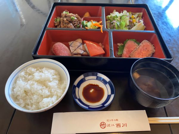 「近江牛づくし弁当」(ご飯付き)をオーダー。