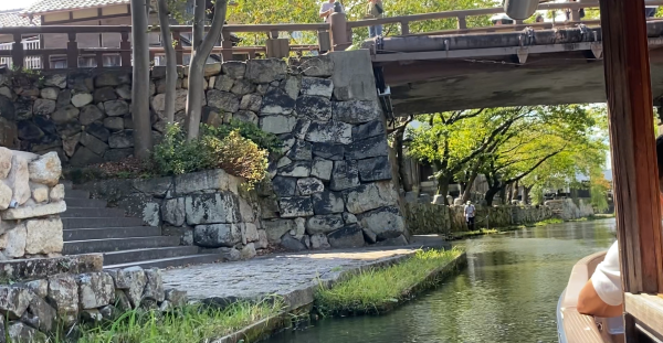 この船はエンジンで動き、八幡堀についてのガイドは音声案内になっていた。